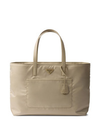 large Re-Edition 1978 tote bag Highlights - Beige - Logo plaque - Double top handles - Front slip pocket - Internal zip pocket - Spacious main compartment - Signature lining - Detachable tag Composition Lining: Nylon 100% Outer: Recycled Polyamide 100%, Saffiano Leather 100% SIZE & FIT Measurement DEPTH 5.9 in(15 cm) HEIGHT 12.2 in(31 cm) WIDTH 16.92 in(43 cm)