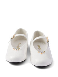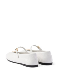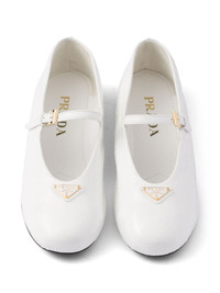 leather ballerina shoes Highlights - White - Leather - Patent finish - Side buckle fastening - Enamel triangle logo - Almond toe - Branded insole - Flat rubber sole Composition Leather 100% SIZE & FIT Measurement HEEL 0.19 in(0.5 cm)