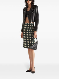 leather biker jacket The biker jacket is a timeless silhouette that transcends seasons and trends. Prada's take on the classic design is crafted from soft nappa leather and made instantly recognisable by the brand's signature triangle logo. Highlights - Black - Leather - Off-centre front zip fastening - Notched lapels - Logo patch at the chest - Enamel triangle logo - Zip-fastening chest pocket - Front flap pocket - Detachable and adjustable waist belt - Long sleeves - Cuff zips - Straight hem - Cropped Composition Lambskin 100%