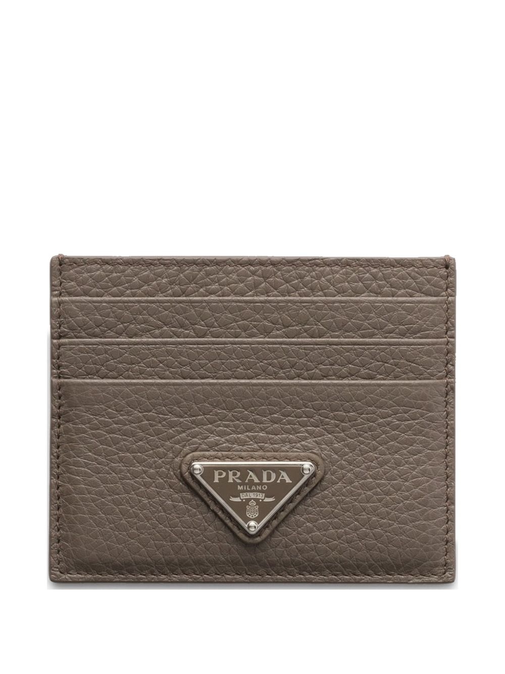 leather card holder Highlights - Taupe grey - Card slots - Enamel triangle logo Composition Calf Leather 100% SIZE & FIT Measurement LENGTH 3.14 in(8 cm) WIDTH 3.93 in(10 cm)