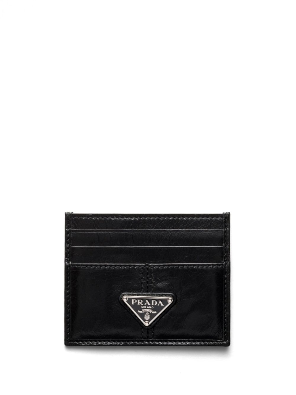 leather cardholder Highlights - Black - Leather - Card slots - Enamel triangle logo - Rectangle shape Composition Outer: Leather 100%