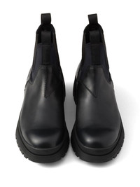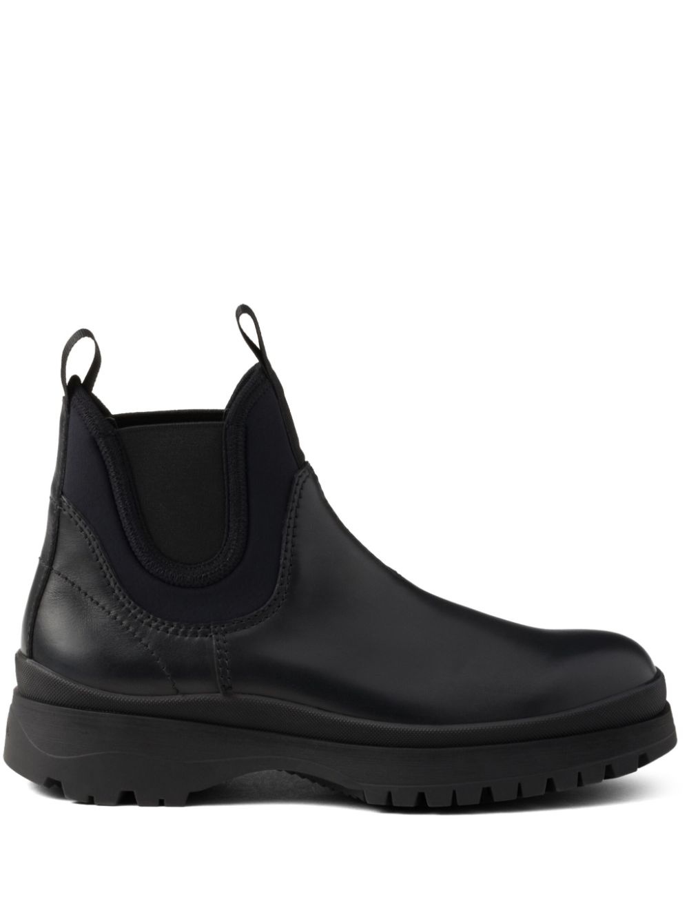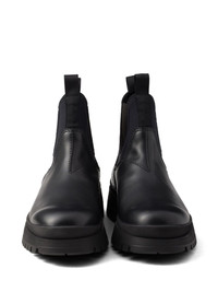 leather Chelsea boots Highlights - Black - Calf leather - Pull-on style - Pull-tab at the heel - Elasticated side panels - Pull-tab at the tongue - Round toe - Chunky rubber sole - Ankle-length Composition Lining: Fabric 100% Sole: Rubber 100% Outer: Fabric 100%, Leather 100%