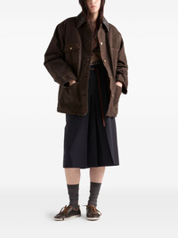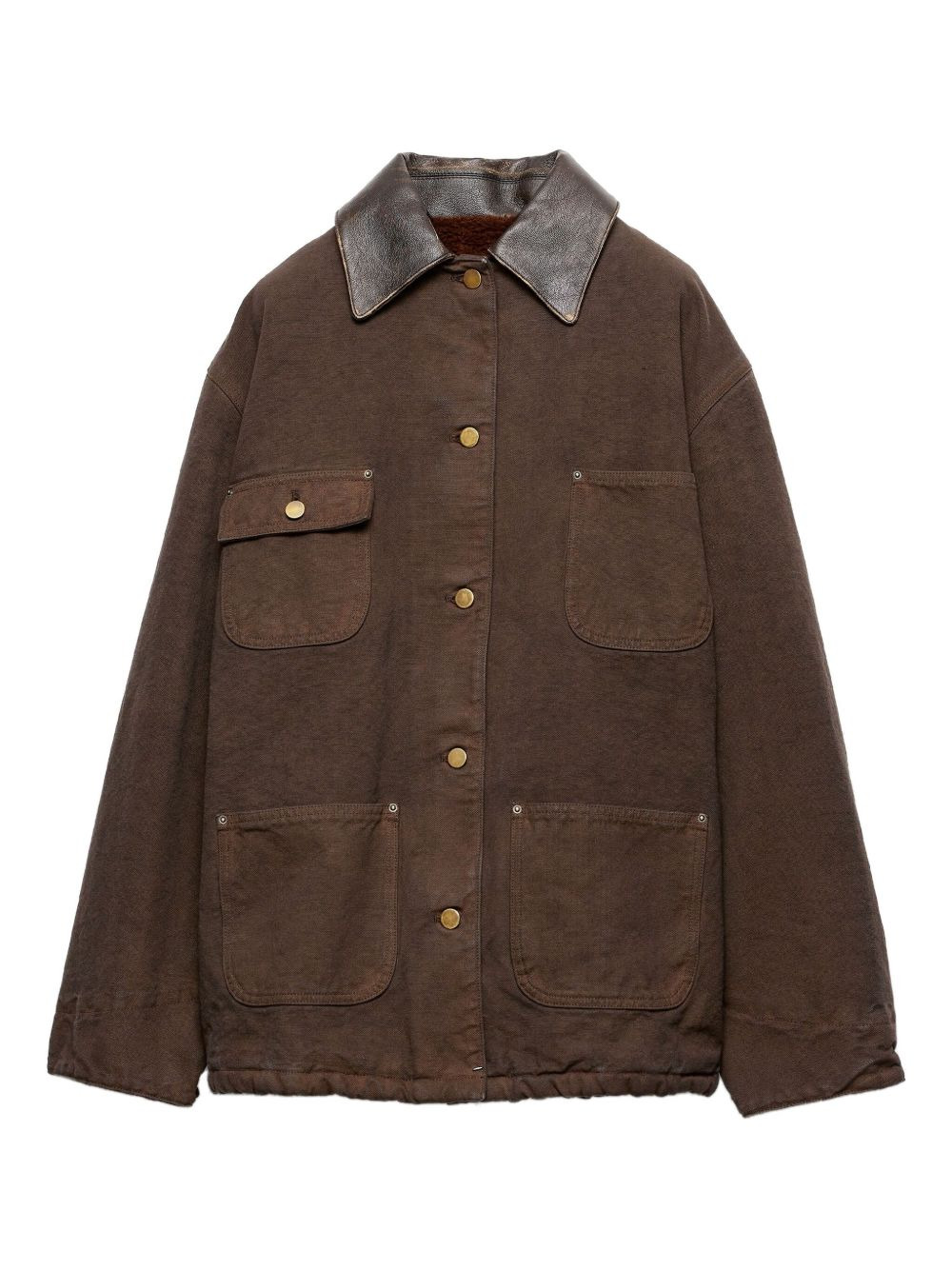 leather-collar canvas jacket Highlights - Brown - Leather collar - Button closure - Patch pockets - Long sleeves Composition Canvas 100%, Leather 100% Washing instructions Read Manufacturer Guidelines