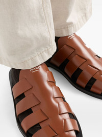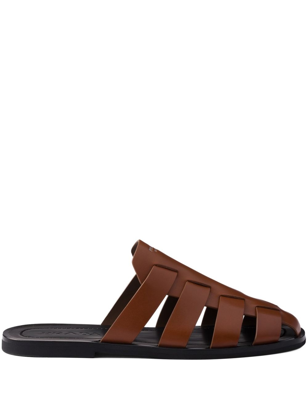 leather fisherman mules Highlights - Brown - Flat rubber sole - Enamel triangle logo - Slip-on style Composition Sole: Rubber 100% Lining: Leather 100% Outer: Leather 100%
