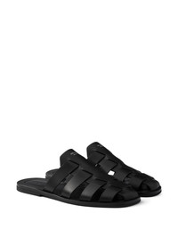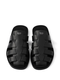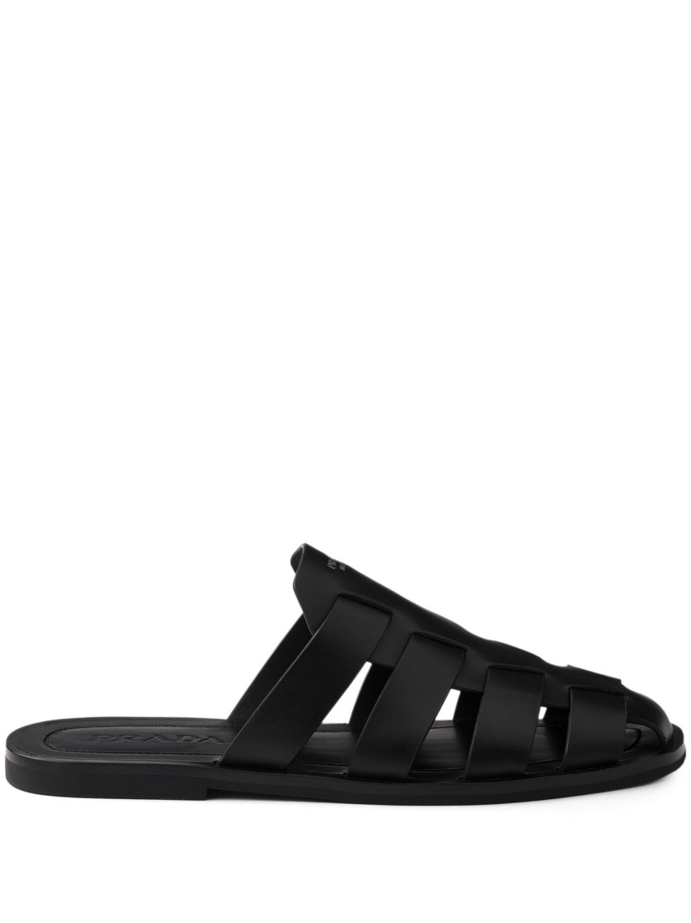 leather fisherman mules Highlights - Black - Flat sole - Enamel triangle logo - Slip-on style Composition Lining: Leather 100% Sole: Rubber 100% Outer: Leather 100%