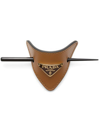 leather hair clip Highlights - Caramel brown - Leather - Smooth grain - Enamel triangle logo - Bar-pin fastening Composition Plexiglass 100%, Leather 100%