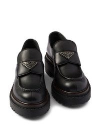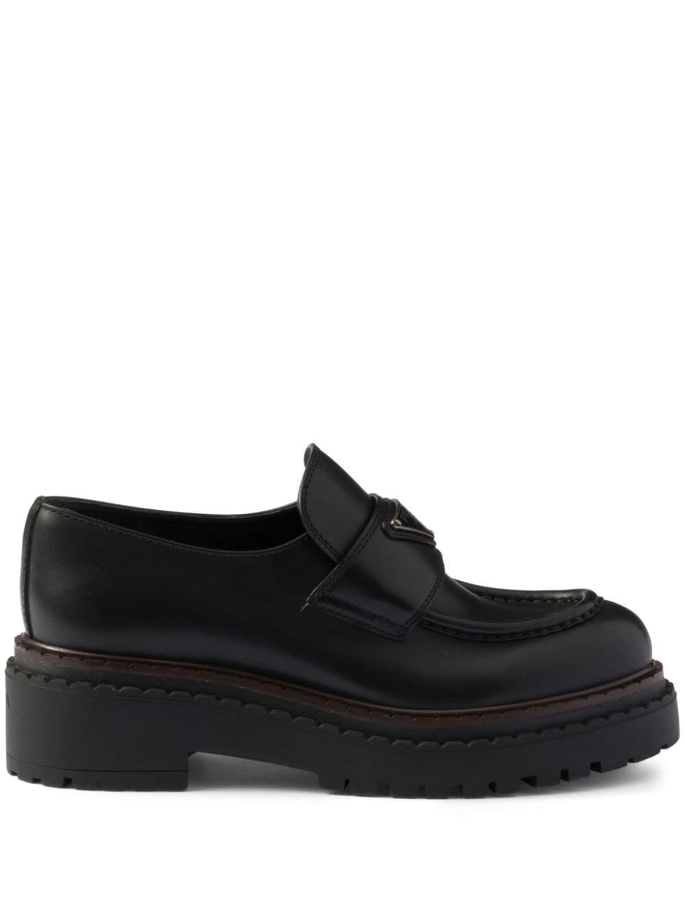 Double Chocolate loafers Highlights - Black - Leather - Smooth grain - Enamel triangle logo - Silver-tone hardware - Moc stitching - Round toe - Chunky rubber sole - Slip-on style Composition Leather 100% SIZE & FIT Measurement HEIGHT 2.16 in(5.5 cm)