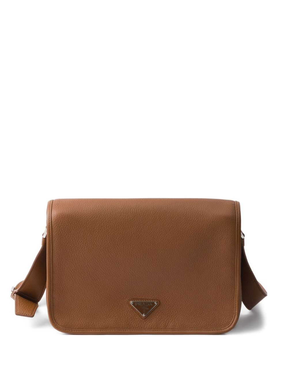 leather messenger bag Highlights - Warm brown - Rectangular shape - Logo plaque - Adjustable shoulder strap - Top flap closure - Single main compartment Composition Outer: Calf Leather 100%