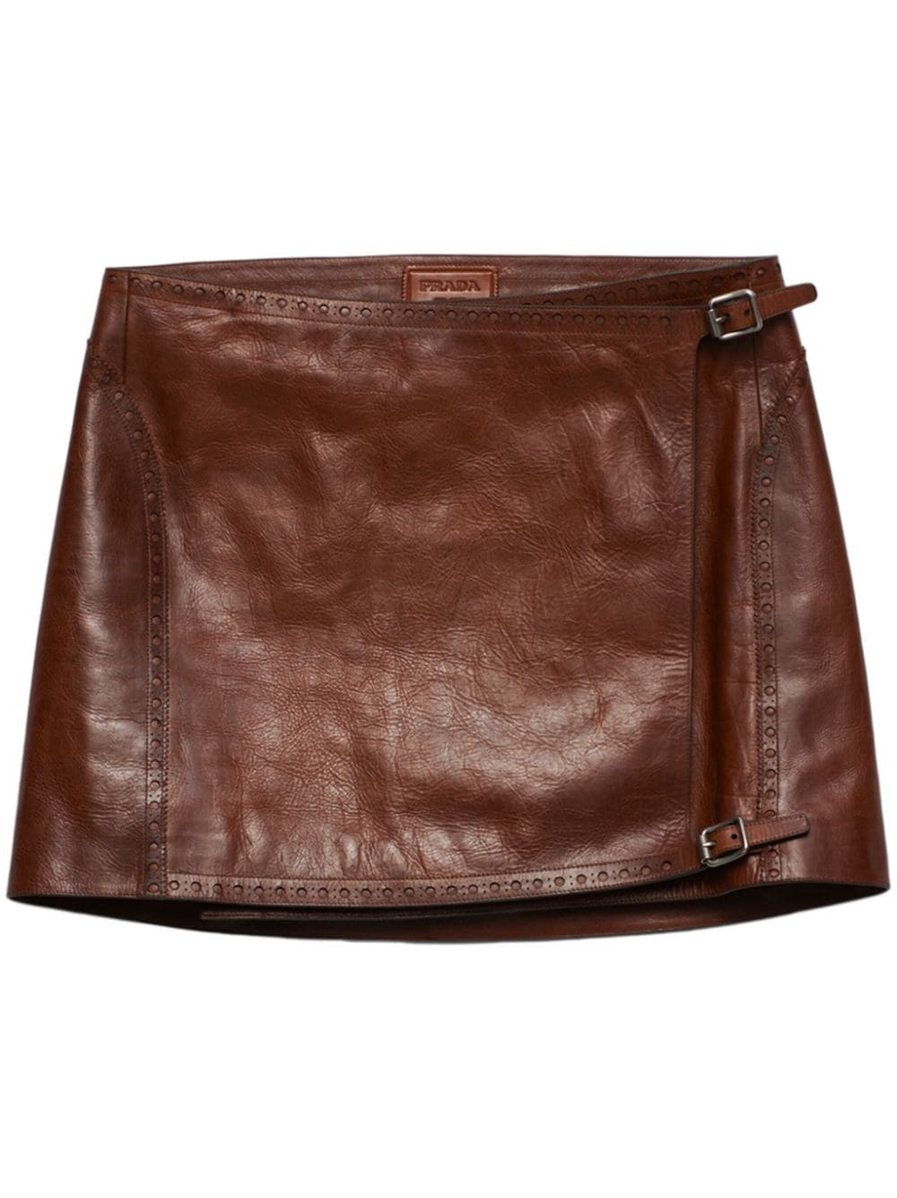 leather mini skirt Highlights - Chocolate brown - Calf leather - Side buckle fastening - Perforated detailing - Straight hem - Thigh-length Composition Calf Leather 100%