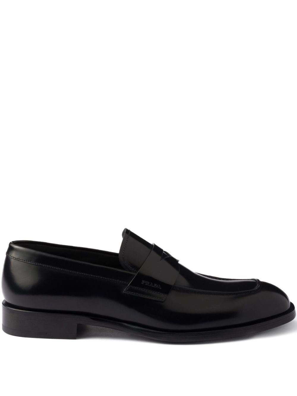 leather penny loafers Highlights - Black - Slip-on design - Embossed logo detailing - Slightly raised sole - Almond toe Composition Sole: Leather 100% Outer: Leather 100% Lining: Leather 100%