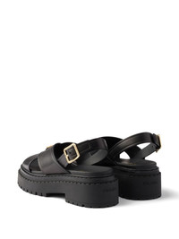 leather platform sandals Highlights - Black - Cross-strap design - Adjustable buckle strap - Chunky sole - Contrasting tread Composition Outer: Leather 100% Lining: Leather 100% Sole: Rubber 100% SIZE & FIT Measurement HEEL 2.16 in(5.5 cm)