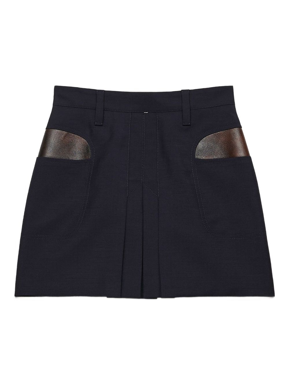 leather-pocket pleated mini skirt