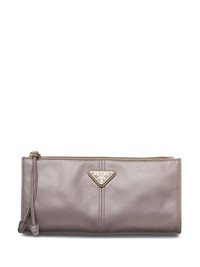 leather pouch bag Highlights - Grey - Leather - Enamel triangle logo - Top zip fastening - Main compartment - Internal card slots - Internal logo stamp Composition Outer: Leather 100% SIZE & FIT Measurement LENGTH 7.87 in(20 cm) WIDTH 3.93 in(10 cm)