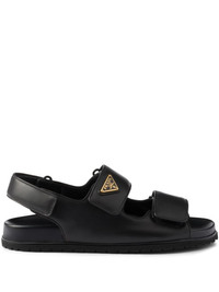 leather sandals Highlights - Black - Front touch-strap fastening - Slingback strap - Triangle logo - Branded footbed Composition Lining: Calf Leather 100% Sole: Rubber 100% Outer: Calf Leather 100%