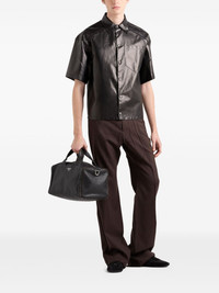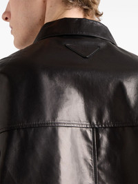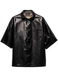 leather shirt Highlights - Black - Front press-stud fastening - Chest patch pocket - Triangle logo - Panelled design Composition Lambskin 100%