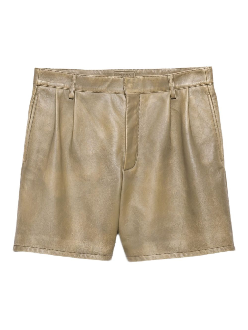 leather shorts Highlights - Sand beige - Concealed front fastening - Belt loops - Two side inset pockets - Two rear flap pockets Composition Nappa Leather 100% Washing instructions Read Manufacturer Guidelines