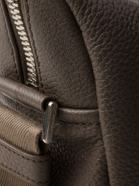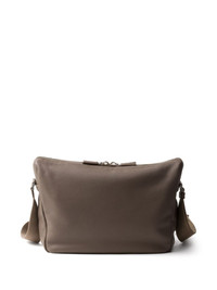 leather shoulder bag Highlights - Grey - Leather - Grained texture - Two-way zip fastening - Adjustable shoulder strap - Enamel triangle logo - Main compartment - Internal zip-fastening pocket - Internal logo plaque Composition Outer: Leather 100% Lining: Recycled Nylon 100%