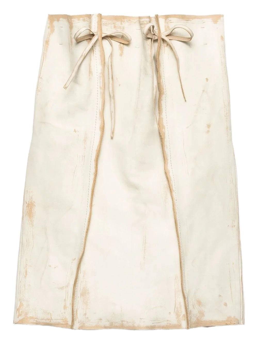 leather skirt Highlights - Lightweight texture - Worn finish - Raw-cut edges - Unlined garment - Regular fit - Closure with internal elastic - The model is 178 cm tall and wears a size 38 Composition Calf Leather 100% SIZE & FIT Measurement HIPS 33.85 in(86 cm) WAIST 23.22 in(59 cm) Washing instructions Read Manufacturer Guidelines