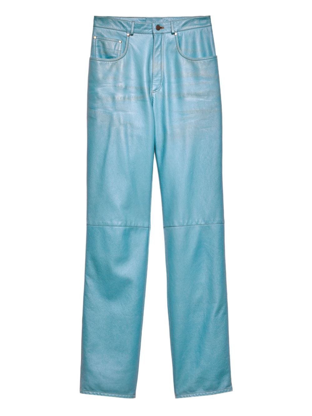 leather trousers Highlights - Sky blue - High-waisted - Concealed fly and button fastening - Front pockets - Back pockets - Belt loops - Seam detailing Composition Nappa Leather 100%