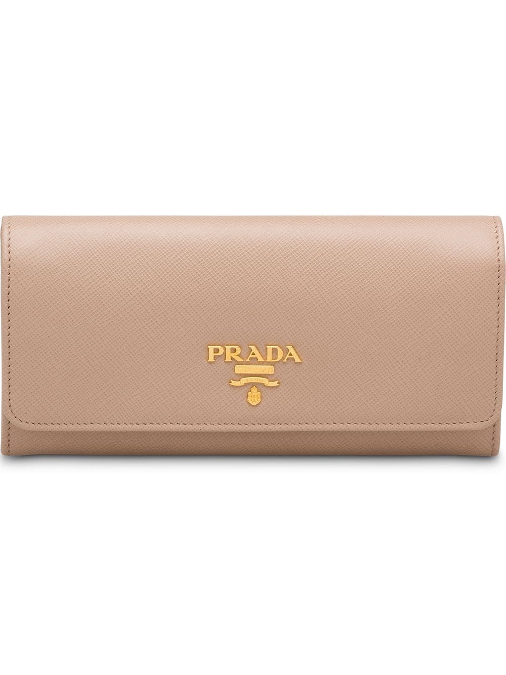 Leather wallet Chiefs in leather craftsmanship, Prada's acclaimed Saffiano leather is consistently found throughout every collection. This powder pink Leather wallet from Prada features a snap button closure, an internal zipped pocket, multiple interior card slots, gold-tone hardware, a fiery red interior and a Prada lettering logo on the front. Composition Outer: Calf Leather 100%, Metal 100% Lining: Calf Leather 100% SIZE & FIT Measurement WIDTH 7.48 in(19 cm) HEIGHT 3.93 in(10 cm)