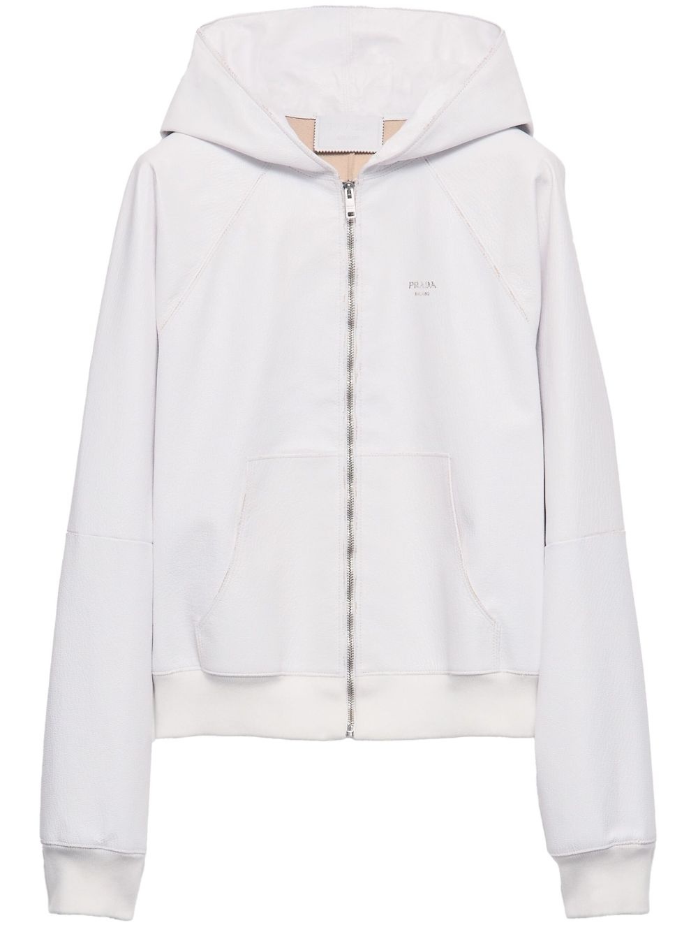leather zip-up hoodie Highlights - White - Front zip fastening - Two front pouch pockets - Long raglan sleeves Composition Goat Skin 100%