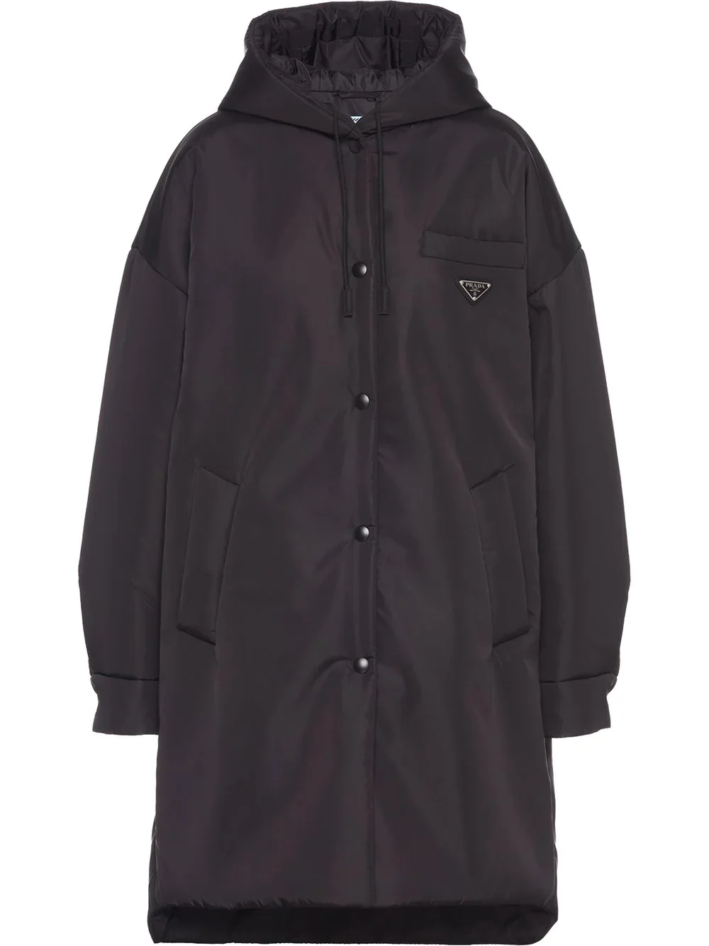 Light Re-Nylon triangle-logo raincoat Ready for the rain? Just put on this Light Re-Nylon raincoat from Prada that features an oversized silhouette and is adorned with the House's enamel triangle logo at the chest. You'll look so good that you'll start longing for bad weather. Highlights - Black - Recycled nylon - Lightweight construction - Enamel triangle logo - Drawstring hood - Snap-button fastening - Drop shoulder - Long sleeves - Snap button-fastening cuffs - Two side welt pockets - Rear curved hem - Oversized Composition Nylon 100%