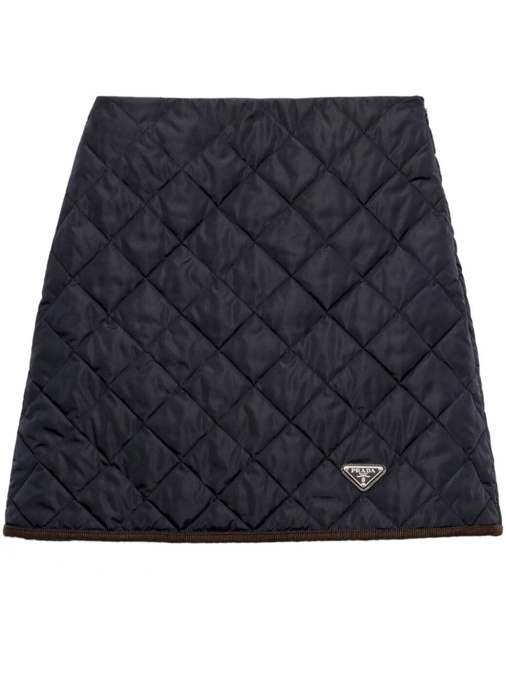 lightweight re-nylon miniskirt Highlights - Navy blue - Recycled nylon - Quilted - Enamel triangle logo - Mid-rise - A-line - Velvet trim - Thigh-length - Hook and zip fly fastening Composition Recycled Nylon 100%