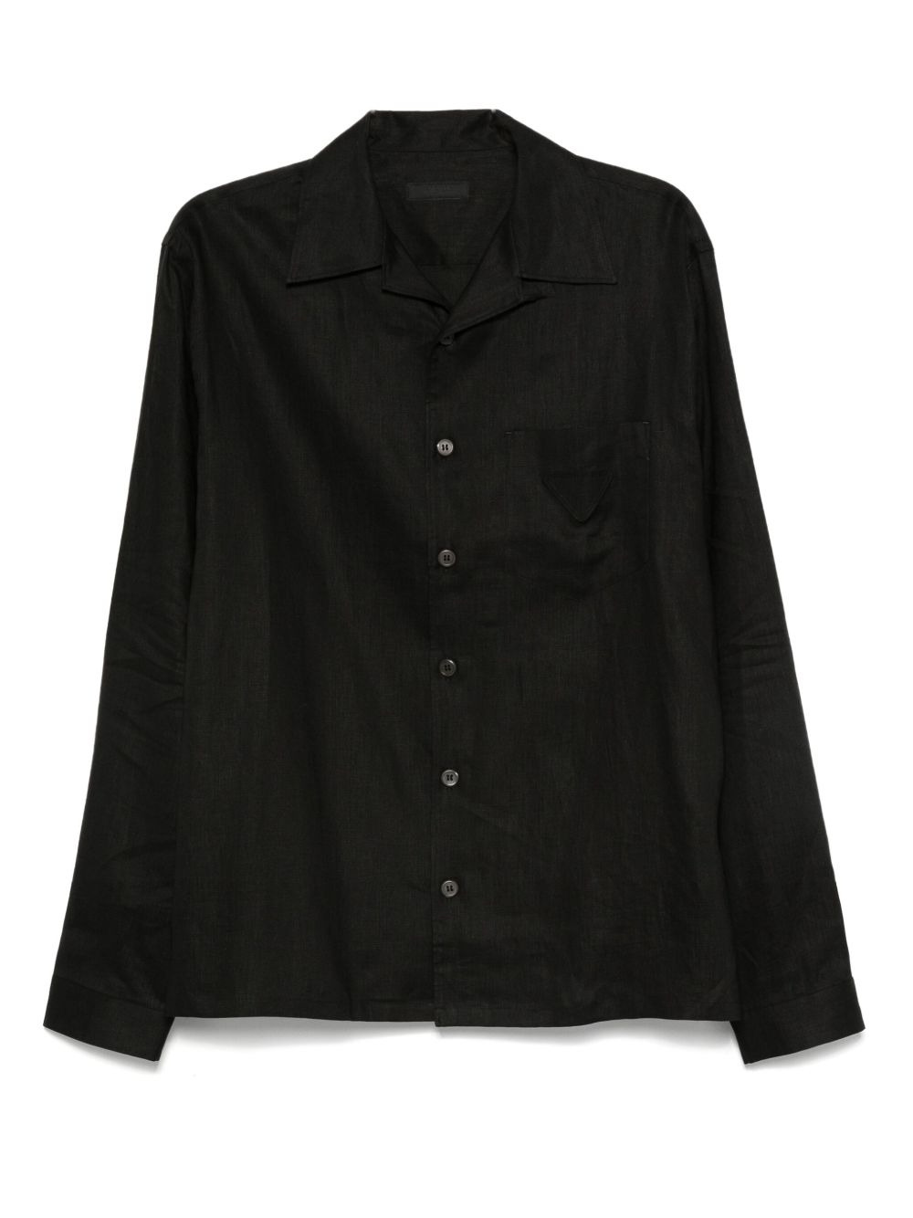 linen shirt Highlights - Black - Front button fastening - Chest patch pocket - Buttoned cuffs - Triangle logo Composition Linen/Flax 100% SIZE & FIT Model measurements Height 6 ft 2 in(1.87 m) Bust/Chest 37.79 in(96 cm) Hips 37.79 in(96 cm) Waist 30.31 in(77 cm) FittingInformation Designed to be unstructured, offering a loose fit throughout Made from a lightweight non-stretch fabric