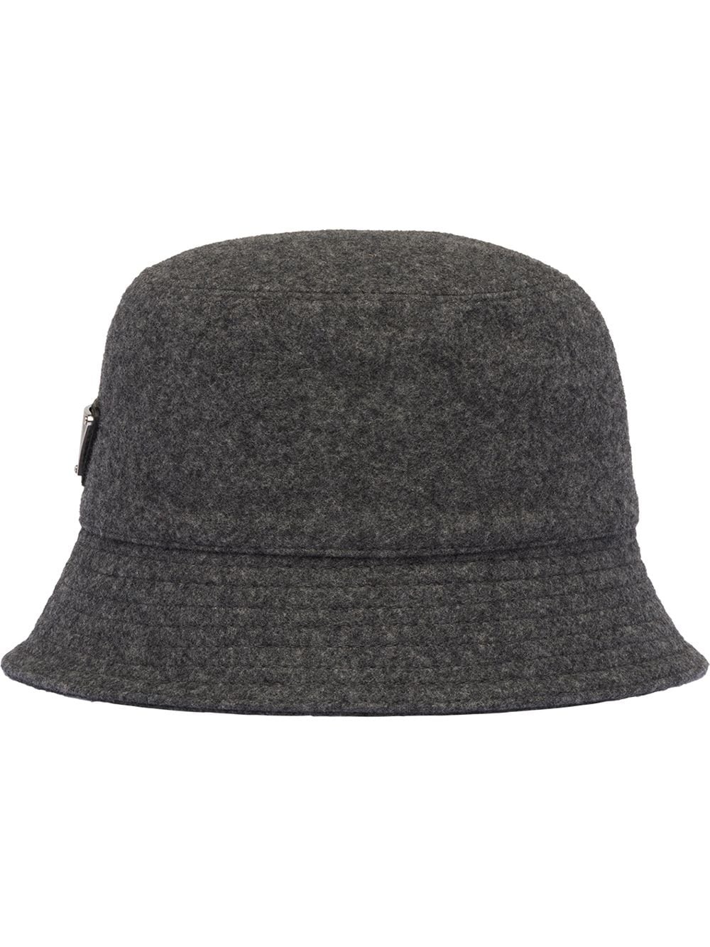 Loden rain hat Buckets aren't just for DIY. They also make a great accessory choice, like this grey virgin wool Loden rain hat from Prada. The best way to top off your outfit. Featuring a flexible brim, a bucket style and a logo plaque. Composition Virgin Wool 100%