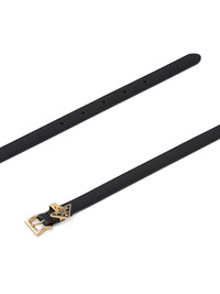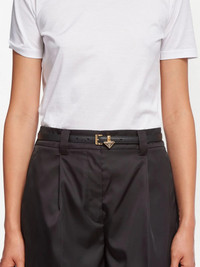 triangle-logo leather belt No wardrobe is complete without a sleek black belt - that's where Prada comes in. The triangular logo plaque is simply iconic. Highlights - Black - Leather - Adjustable fit - Gold-tone hardware - Saffiano leather - Logo plaque - Buckle fastening - Punched holes Composition Calf Leather 100% SIZE & FIT Measurement Minimum Length 27.55 in(70 cm) TOTAL LENGTH 31.49 in(80 cm) WIDTH 0.39 in(1 cm)