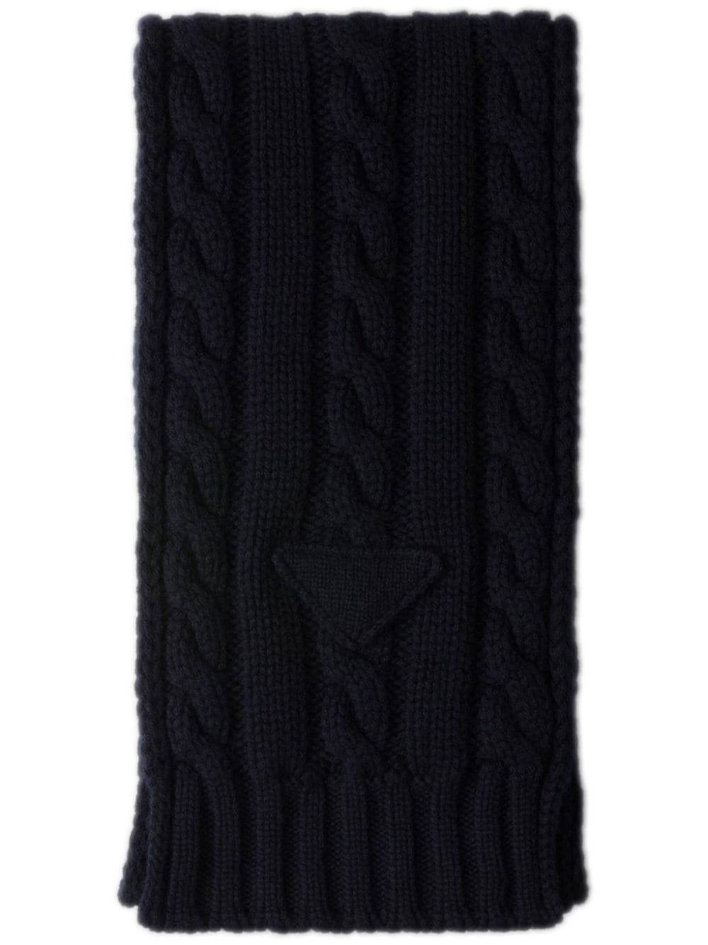 logo-detail cashmere scarf Highlights - Navy blue - Cashmere - Chunky ribbed knit - Knit signature triangle logo Composition Cashmere 100% SIZE & FIT Measurement LENGTH 62.99 in(160 cm)
