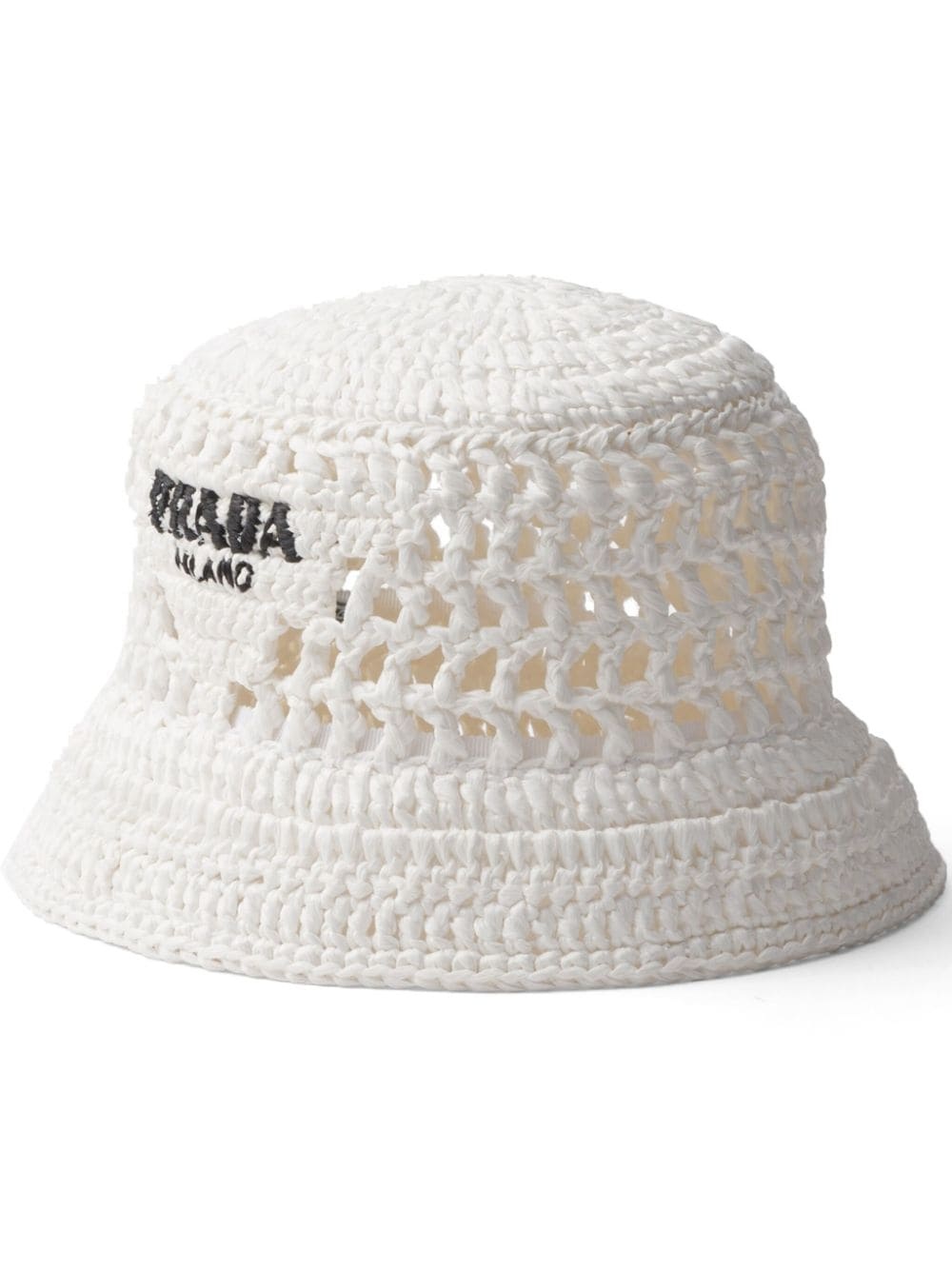 logo-embroidered interwoven bucket hat Highlights - White/black - Interwoven design - Embroidered logo to the front - Flat crown - Dropped narrow brim - Unlined - This piece comes with a certificate of authenticity. - This piece comes complete with a protective dust bag. Composition Raffia 100% SIZE & FIT Measurement CIRCUMFERENCE 22.44 in(57 cm)