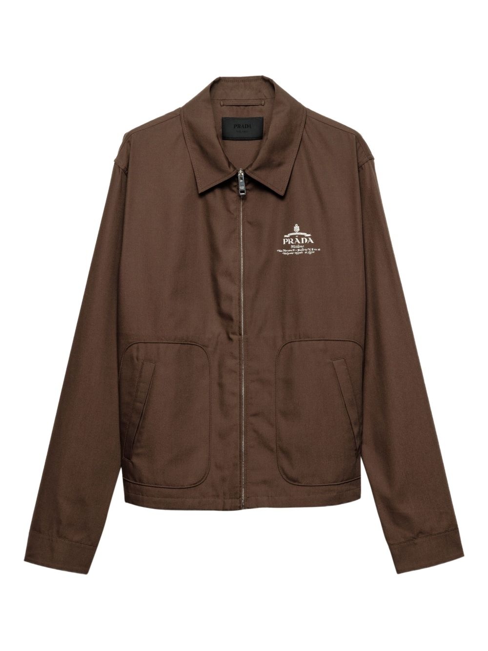 logo-embroidered jacket Highlights - Brown - Front zip fastening - Embroidered logo at the chest - Classic collar - Long sleeves Composition Polyester 65%, Cotton 35%