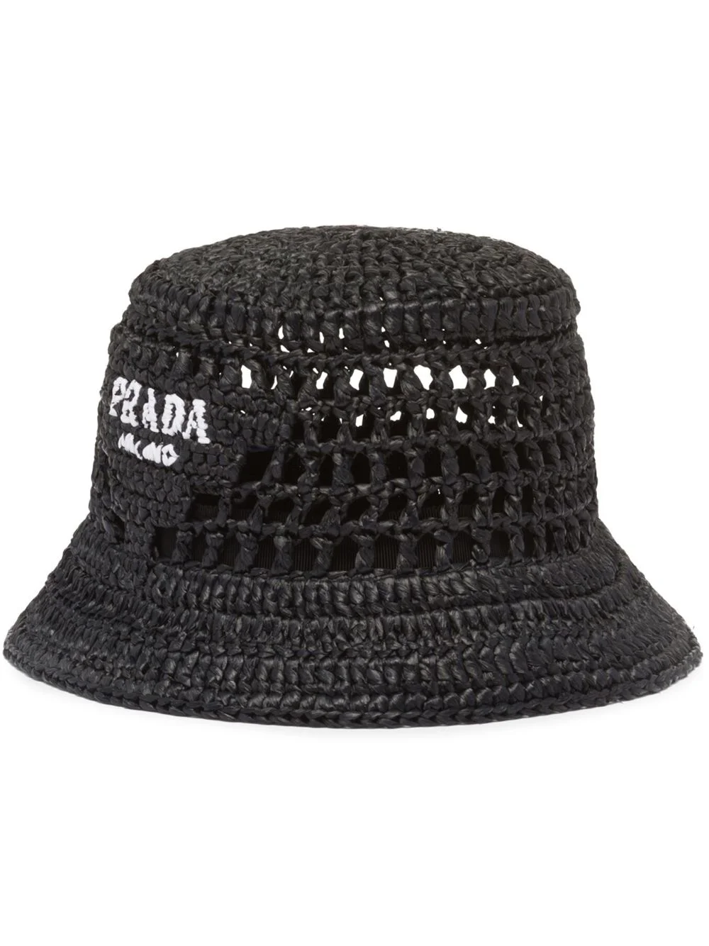 raffia bucket hat Woven from raffia, Prada's logo embroidered bucket hat will make a great accessory. Made in Italy, the wearable silhouette is timeless and trans-seasonal. Highlights - Black - Raffia - Woven raffia design - Embroidered logo - Dropped wide brim Composition Raffia 100% SIZE & FIT Measurement CIRCUMFERENCE 24.01 in(61 cm) BRIM 2.16 in(5.5 cm)