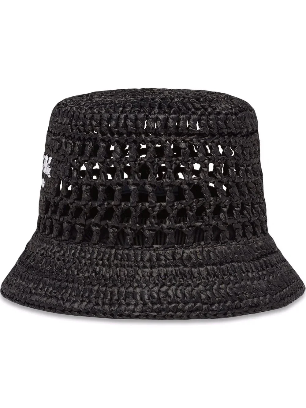 raffia bucket hat Reminiscent of streetwear styles, Prada's iconic raffia bucket hat is accented by the logo lettering in chalk-white at the front. Highlights - Black - Raffia - Black - Raffia - Woven raffia design - Embroidered logo to the front - Dropped wide brim - Slip-on style Composition Raffia 100%