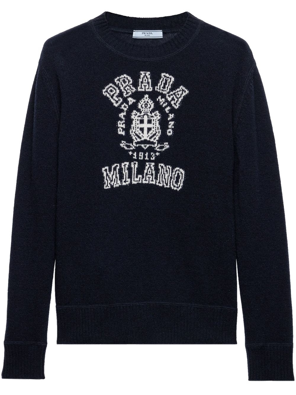 logo-intarsia sweater Highlights - Navy blue - Crew neck - Long sleeves - Ribbed-knit edge Composition Virgin Wool 70%, Cashmere 30% Washing instructions Read Manufacturer Guidelines