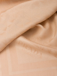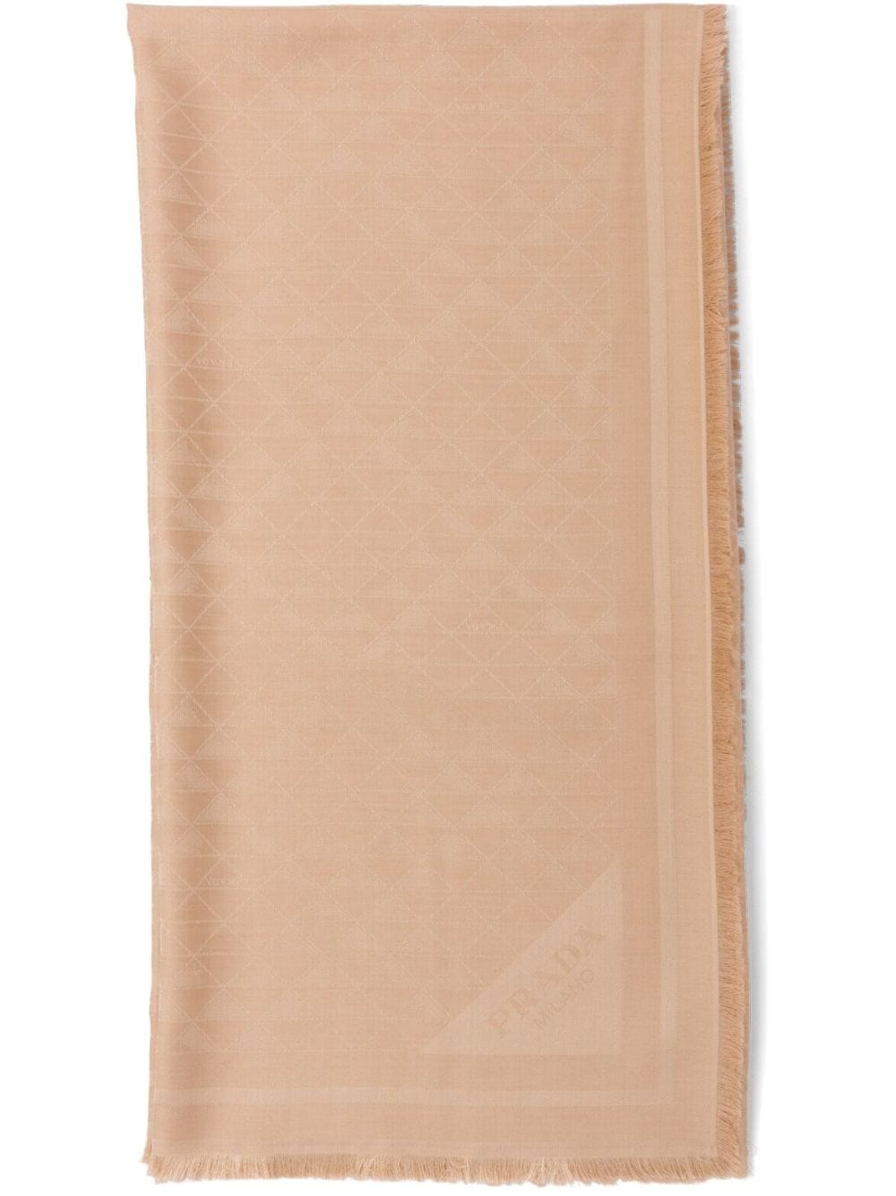 Symbole logo-jacquard scarf PRADA's iconic triangle is transformed into a delicate jacquard pattern that animates this scarf from the SS23 collection, making it an instantly recognisable accessory. The beige-hued garment is finished with fringed edges. Highlights - Sand beige - Wool/silk - Square body - Jacquard logo motif - Fringed edge Composition Silk 100%, Wool 100% SIZE & FIT Measurement LENGTH 55.11 in(140 cm) WIDTH 55.11 in(140 cm)