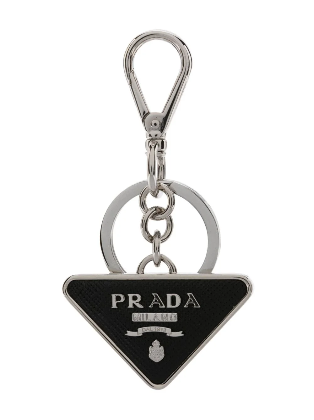 logo keyring Founded in 1913 by Mario Prada, the brand is known for producing timeless items with traditional Milanese craftsmanship. Expect to see outerwear with a utilitarian twist and vibrant accessories that have amassed a cult following. This black leather and metal logo keyring from Prada features silver-tone hardware. Composition Metal 100%, Calf Leather 100% SIZE & FIT Measurement WIDTH 0.78 in(2 cm) LENGTH 3.54 in(9 cm)