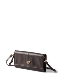 logo leather wallet Highlights - Brown - Metal triangle logo - Snap closure - Card slots - Detachable adjustable shoulder strap Composition Outer: CALFSKIN 100% SIZE & FIT Measurement HEIGHT 3.74 in(9.5 cm) WIDTH 7.87 in(20 cm)