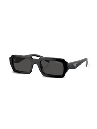 logo-lettering rectangular sunglasses Crafted from black acetate, these Prada sunglasses give off a retro feel thanks to their rectangle frame and thick rim. At the temples, silver-tone logo lettering adds the final touch. Highlights - Black - Acetate - Silver-tone logo lettering at the arm - Rectangle frame - Grey tinted lenses - Straight arms - Curved tips - These glasses come with a protective case. Composition Acetate 100%