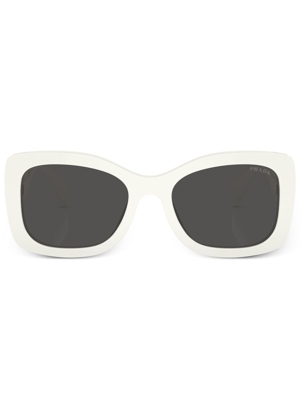 logo-lettering square sunglasses Prada imbues these white sunglasses with its refined essence – they're crafted from acetate to a minimalist, rounded square frame, as gold-tone logo lettering at the temples adds an understated branding touch. Highlights - White - Acetate - Gold-tone logo lettering at the arm - Square frame - Grey tinted lenses - Oversize arms - Curved tips - These glasses come with a protective case. Composition Acetate 100%