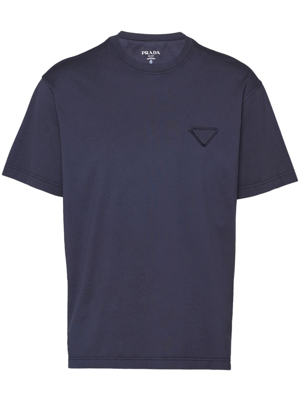 logo-patch cotton T-shirt Highlights - Navy blue - Cotton - Jersey texture - Logo patch at the chest - Crew neck - Short sleeves - Straight hem Composition Cotton 100%