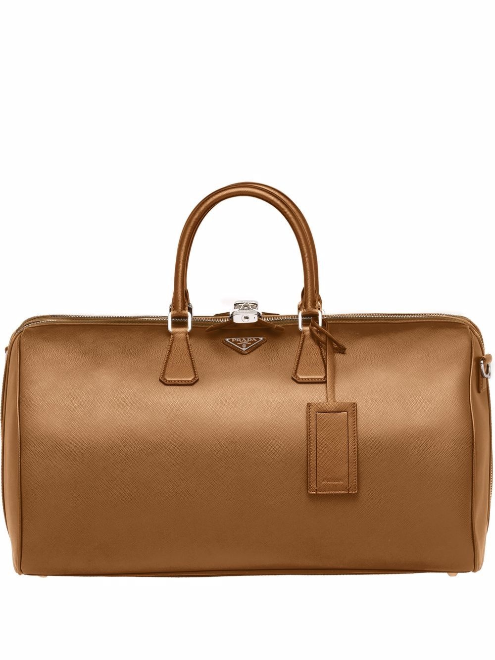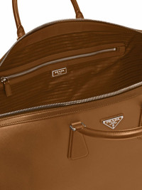 logo plaque duffle bag Defining luxury since 1913, Italian fashion house Prada is renowned for its uncompromised quality and timeless design vision, as seen in this travel bag. Constructed from saffiano leather, this duffle bag features two top handles, a detachable shoulder strap and is finished with the iconic and signature enamel triangle logo. Composition Outer: Leather 100% SIZE & FIT Measurement DEPTH 9.84 in(25 cm) WIDTH 19.68 in(50 cm) HEIGHT 10.82 in(27.5 cm)