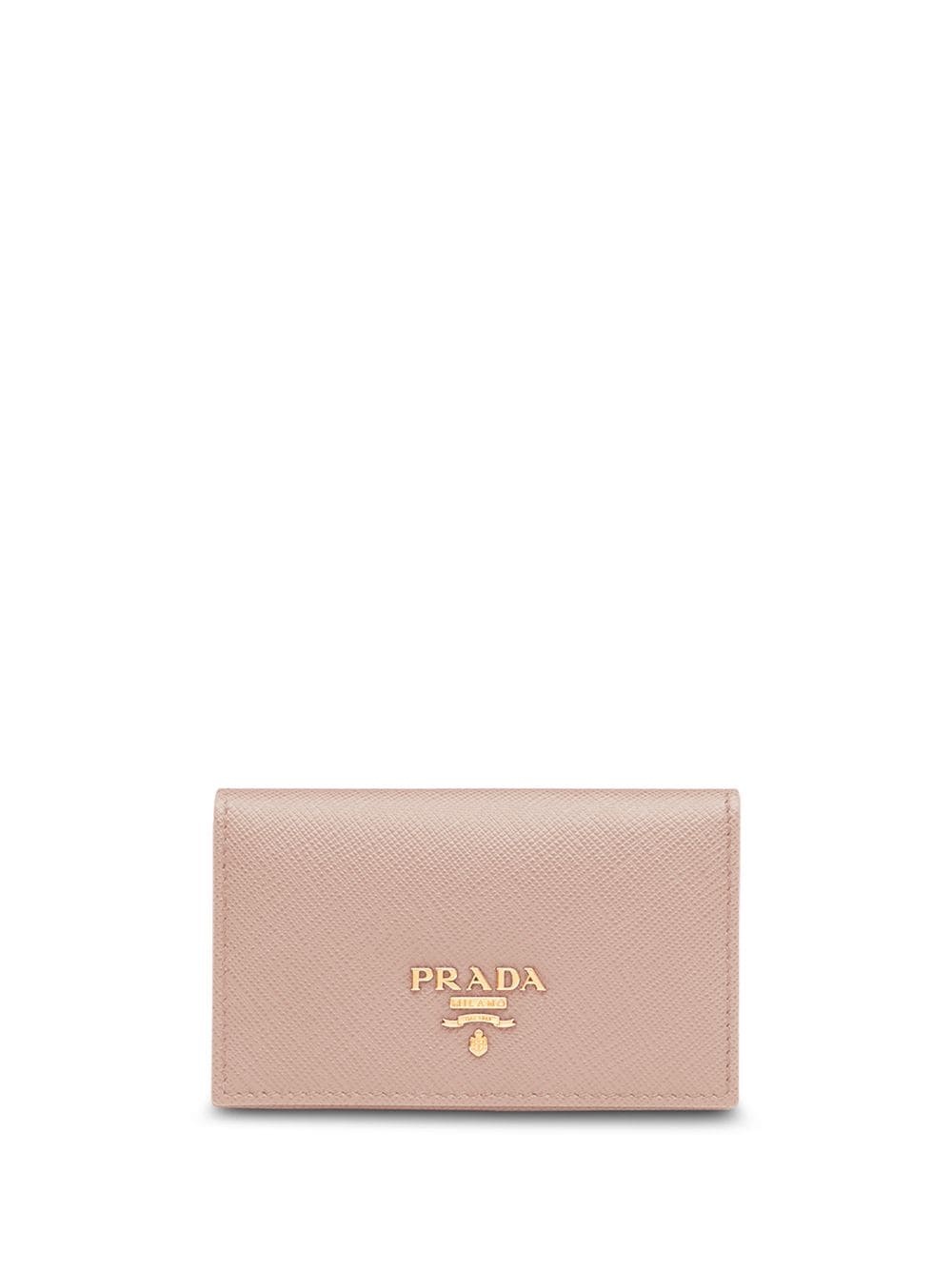 logo-plaque foldover cardholder Tend to keep your cards close to your chest? How about you store them inside this Prada logo-plaque foldover cardholder that has plenty of space to ensure all your plastic is kept in one sleek leather accessory. It's a much safer bet. Highlights - Powder pink - Gold-tone logo plaque - Snap fastening - Internal card slots - Rear patch pocket - Debossed internal logo Composition Calf Leather 100%, Metal 100% SIZE & FIT Measurement DEPTH 1.18 in(3 cm) WIDTH 4.33 in(11 cm) HEIGHT 2.75 in(7 cm)