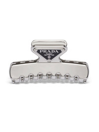 triangle-logo claw clip Highlights - Silver-tone - Metal - Logo plaque - Silver-tone hardware - Clip fastening Composition Metal 100%