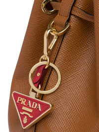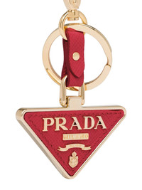 triangle-logo keychain Highlights - The best way to keep your keys protected? with prada of course. constructed from supple leather, this fiery red keychain will make sure that you don't lose your keys again. safe and sound! featuring a clip on fastening and a logo plaque. Composition Calf Leather 100%, Metal 100%
