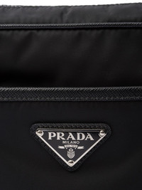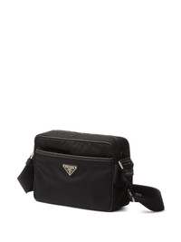 logo-plaque messenger bag Highlights - Black - Econyl® - Adjustable shoulder strap - Logo-engraved silver-tone hardware - Enamel triangle logo - Main compartment - Internal zip-fastening pocket - Logo-jacquard lining - Front zip-fastening pocket - Top zip fastening Composition Outer: Calf Leather 100%, Recycled Nylon 100% SIZE & FIT Measurement DEPTH 2.36 in(6 cm) HEIGHT 5.9 in(15 cm) STRAP 21.65 in(55 cm)
