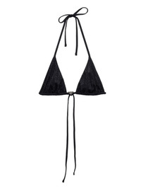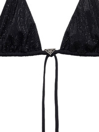logo-plaque rhinestone-embellished bikini top Highlights - Black - Jersey texture - Rhinestone embellishment - Enamel triangle logo - Triangle cup - Halterneck tie fastening - Rear tie fastening - Adjustable spaghetti straps - Be mindful to try on swimwear over your own garments. Composition Nylon 100%