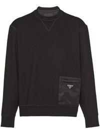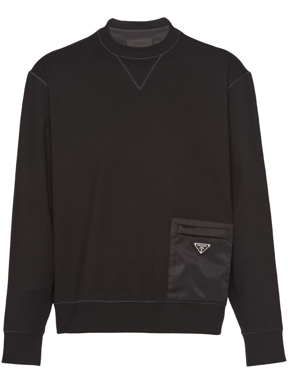 pocket-detail sweatshirt Highlights - Black - Cotton - Enamel triangle logo - Front welt pocket - Crew neck - Long sleeves - Straight hem Composition Cotton 100%, Nylon 100%
