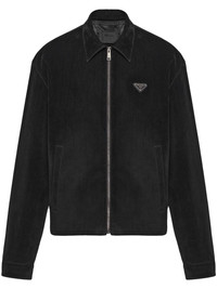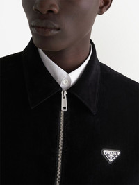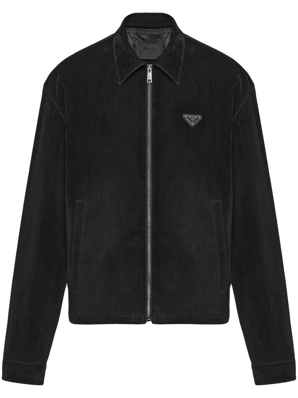 triangle-logo velvet blouson jacket Highlights - Black - Cotton blend - Velvet finish - Silver-tone hardware - Logo plaque - Fitted trims - Classic collar - Front zip fastening - Long sleeves - Slip pockets to the sides - Straight hem Composition Outer: CALFSKIN 100%, Cotton 83%, Viscose 14%, Spandex/Elastane 3% Lining: Viscose 100%